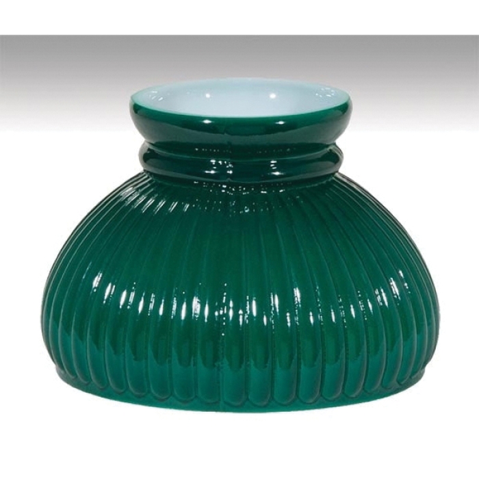 6 inch fitter, green over opal cased glass rib shade with plain top. 4-1/4 inch height, hand blown, 6-3/8 inch bulge.