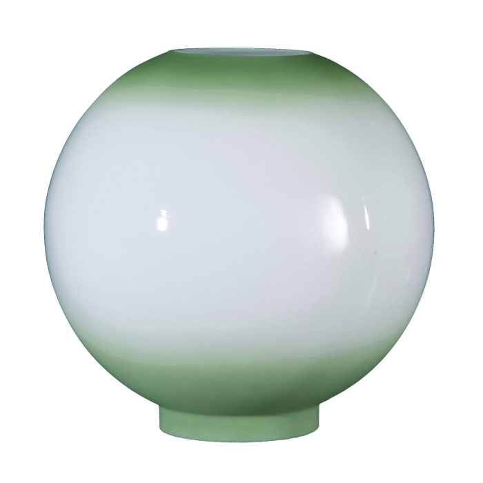 10 inch diameter, Opal Glass Ball Shade with Antique Green Tint, 4 inch fitter. Made in the USA. Hand made and decorated.