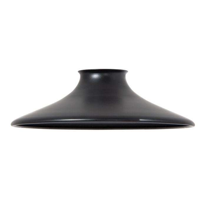 Satin black finish spun steel saucer shade. Shade has a small inside rolled edge.