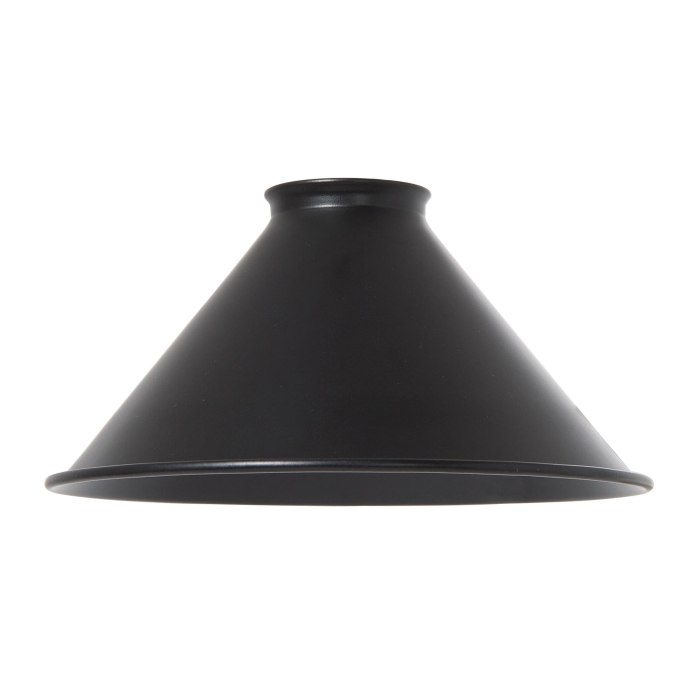 Spun steel, satin black finish cone shade - shade has a small rolled bottom edge.