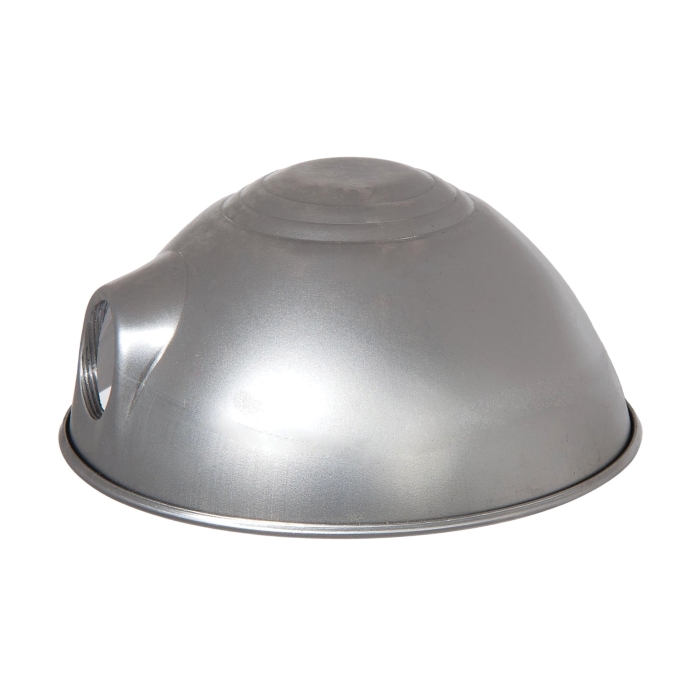 Metal parabolic shade with UNO fitter mounted in the side and small outside rolled edge.1-1/4" inside diameter fitter opening. 6.56 inch by 6.5 inch maximum outside diameter. 3.3 inch height. .035 to .04 (.88mm to 1.01mm) inch material thickness, unfinished steel, lightly oiled to prevent rust. O.D. 170mm, *80mm lamp shade.