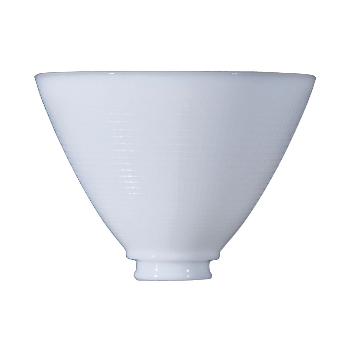 Introducing the 8 inch I.E.S Opal Glass Reflector Shade, 2-1/4 inch fitter (08391) - the perfect addition to your reflector type floor lamp. This shade is made of high-quality I.E.S. white opal glass that provides a soft and warm glow to your living space. The waffle pattern on the shade adds a touch of elegance and sophistication to your lamp.