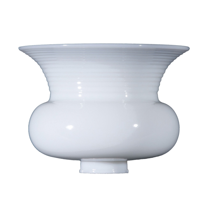 2 7/8 inch fitter, CLM type A reflector shade, opal glass, 7 1/2 inch height, 10 inch top diameter, hand blown, American made.
