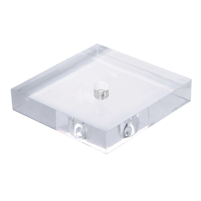 Square acrylic base, no wire way, 6" diameter x 1" thick, 7/16" center hole polished clear