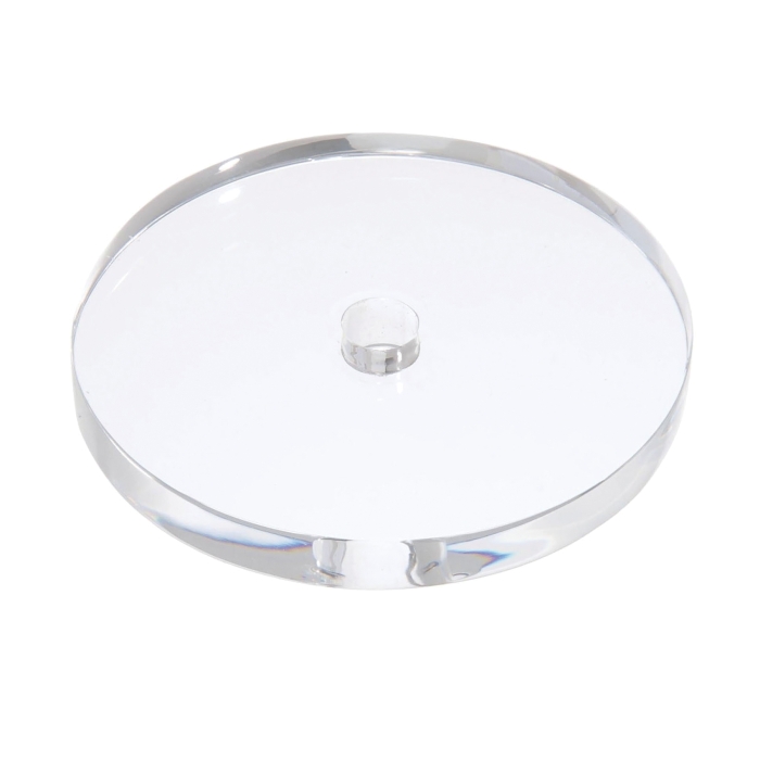 2" diameter round clear acrylic break with 7/16" diameter center hole, No wire way, 3/8" height