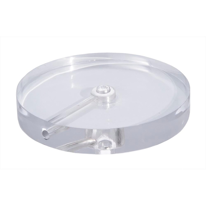 Round acrylic base with counter sunk 7/16" inch center hole, 0.284 inch wire way (side outlet). Perfect for making any kind of lamp. Your choice of diameter from 4 inches to 7 inches.