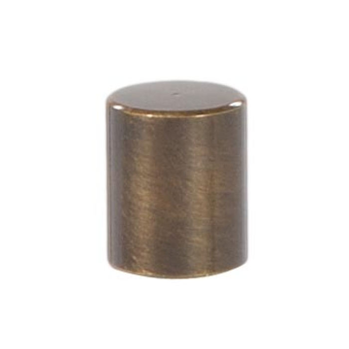 Short, drum style brass lamp finial, tapped 1/4-27F, 1/2" dia., 5/8" ht. Antique brass finish, solid brass.