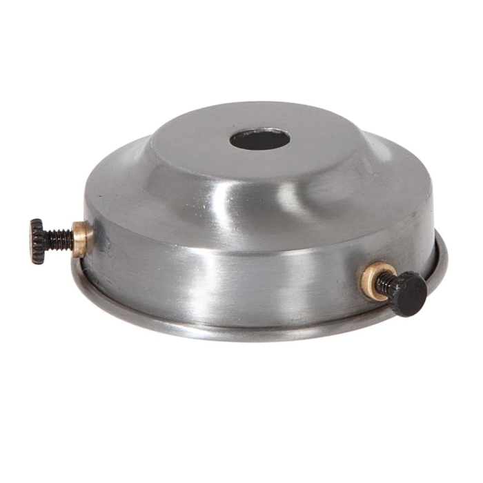 2-1/4" fitter, unfinished steel lamp shade holder, 7/8" tall, 7/16" center hole that slips 1/8 IP. Shade holder uses top quality, turned brass eyelets for the set screws