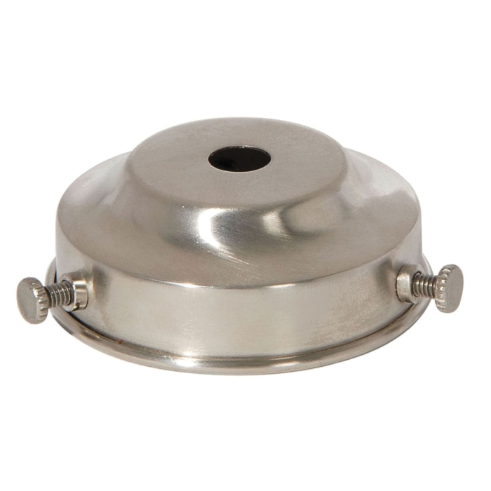 2-1/4" fitter, spun brass lamp shade holder w/satin nickel finish, 7/8" tall, 7/16" center hole that slips 1/8 IP