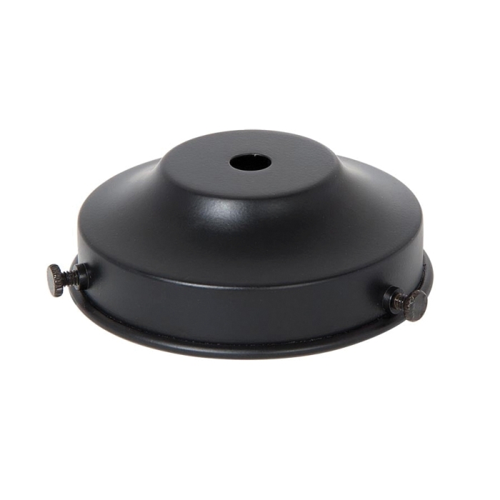 3-1/4" fitter, spun brass lamp shade holder, 1-1/8" tall, has 7/16" center hole that slips 1/8IP. Made with a sturdy gauge of material, this top quality lamp shade holder uses turned brass eyelets to properly mount the set screws. Satin black finish