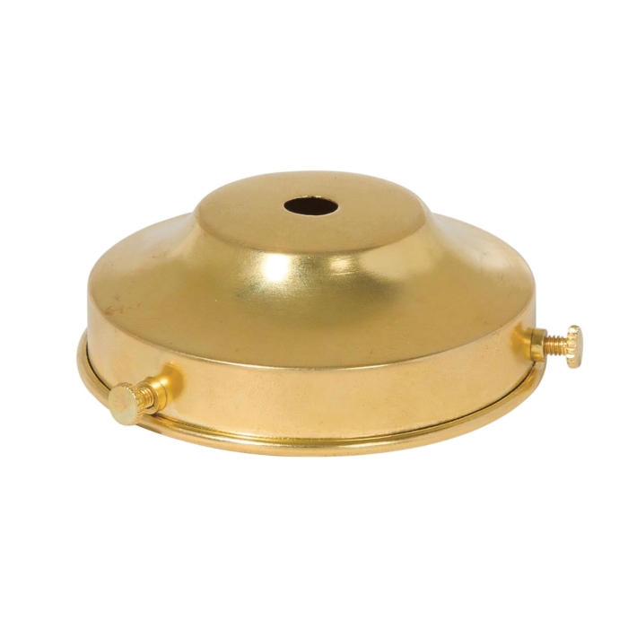 3-1/4" fitter, spun brass lamp shade holder, 1-1/8" tall, has 7/16" center hole that slips 1/8IP. Made with a sturdy gauge of material, this top quality lamp shade holder uses turned brass eyelets to properly mount the set screws. Unfinished Brass