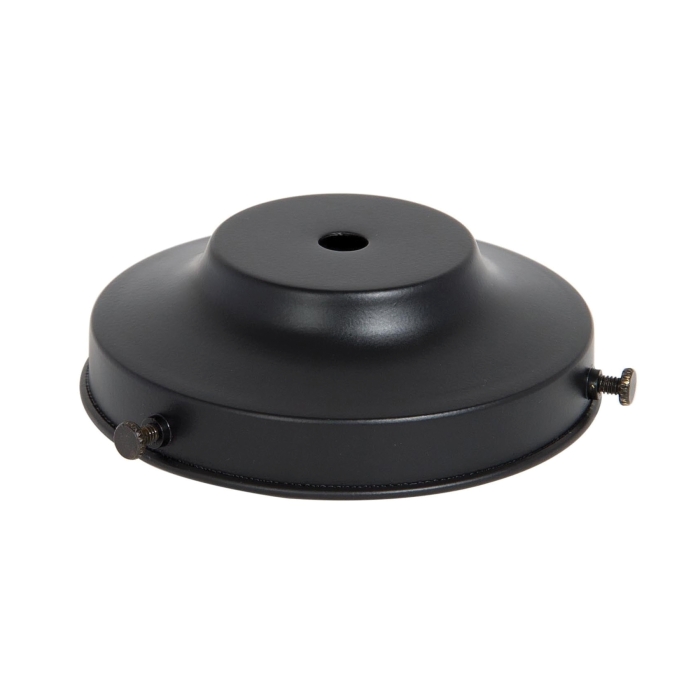 4" fitter, spun brass lamp shade holder, 1-1/4" tall, has 7/16" center hole that slips 1/8IP. Made with a sturdy gauge of material, this top quality lamp shade holder uses turned brass eyelets to properly mount the set screws. Satin black finish