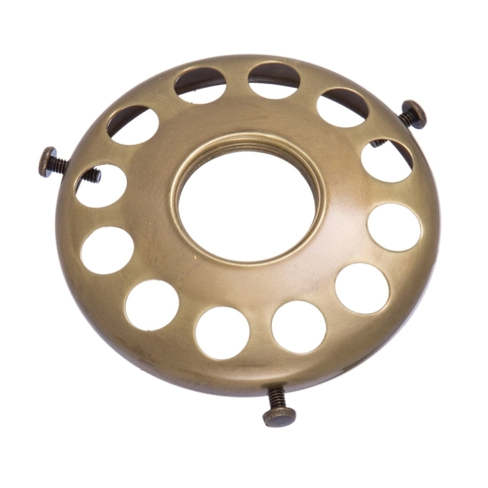 Brass Screw-on, UNO-type Lamp Shade Holder with solid brass rosette set screws. 3-1/4 Inch fitter, antique brass finish