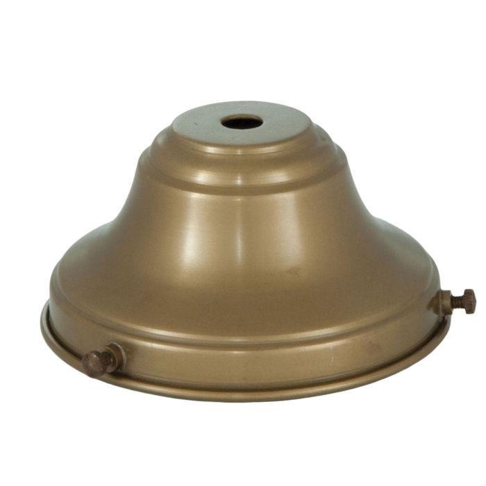Spun Brass Fixture Shade Holder for 4 inch fitter shades. 2 1/2 inch deep with rolled edges & 3 screw eyelets. Slips 1/8 IP. Antique Brass Finish.
