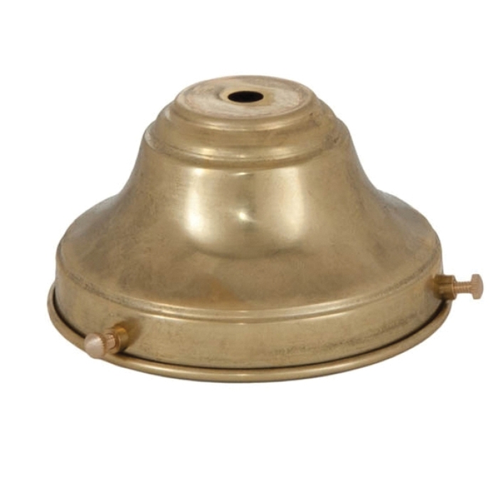 Spun Brass Fixture Shade Holder for 4 inch shades. 2 1/2 inch deep with rolled edges and 3 screw eyelets with set screws. Center hole slips 1/8 IP.