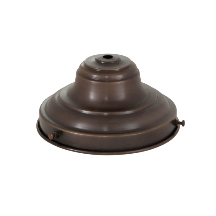 Spun Brass Fixture Shade Holder for 6 inch shades, 3 3/8 inch deep with rolled edges and 3 set screws. Center hole slips 1/8 IP. Antique Bronze Finish.
