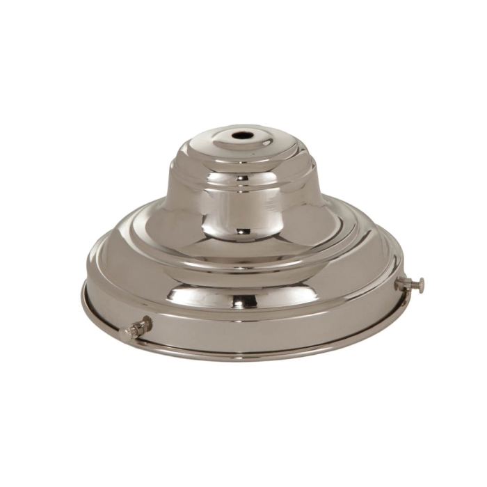 Spun Brass Fixture Shade Holder for 6" fitter shades. 3 3/8" deep w/rolled edges & 3 screw eyelets. Slips 1/8 IP, Nickel Plated Brass
