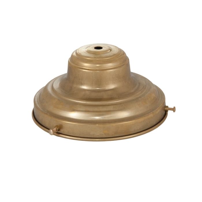 Spun Brass Fixture Shade Holder for 6 inch shades, 3 3/8 inch deep with rolled edges and 3 set screws. Center hole slips 1/8 IP. Unfinished brass.