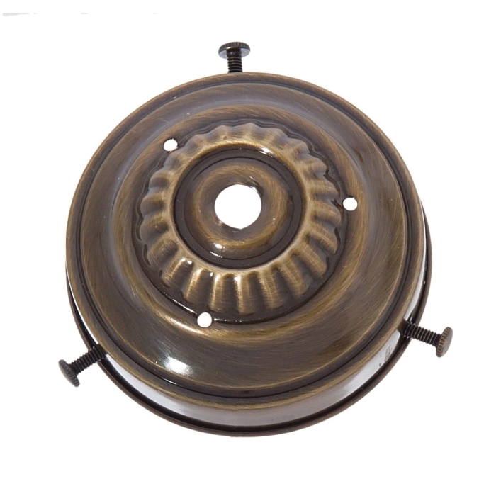 3-1/4" fitter, steel lamp shade holder, 3-1/2" outside diameter, 1-1/2" tall, 7/16" center hole that slips 1/8IP pipe. Antique brass finish
