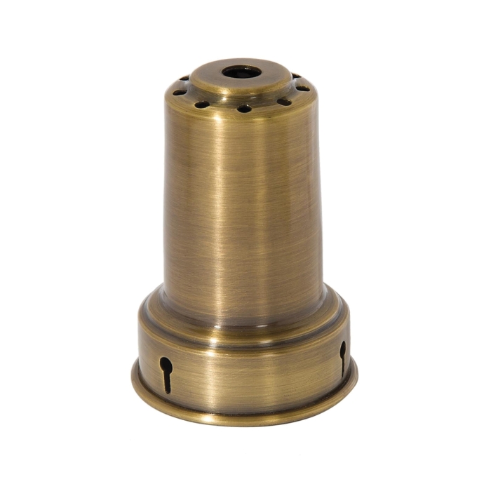 Antique brass finish brass bead-chain shade holder. Shade holder is for mounting 3 strands of #6 bead (our item No. 48600) from the holder to a bead-chain shade.