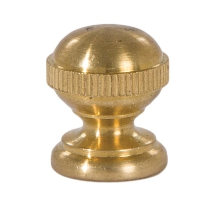 Knurled ball style brass lamp finial, tapped 1/4-27F, 3/4" dia., 7/8" ht. Unfinished, solid brass.