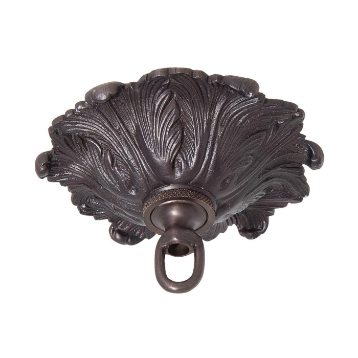 Antique bronze finish die cast brass canopy comes with a screw collar mounting kit. Canopy has an ornamental petal shape.