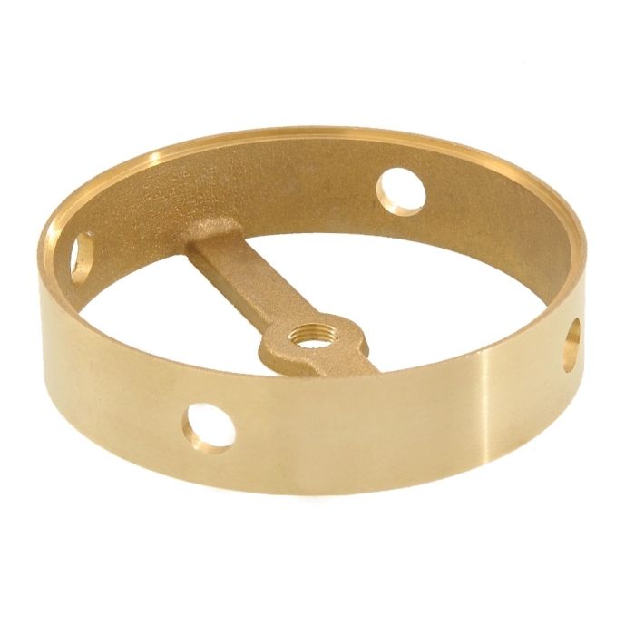 Die Cast Brass Center Ring, side holes slip 1/8 IP pipe, center hole tapped 1/8F. Unfinished Brass,3" dia. Center Ring for Fixture Body, No Side Holes