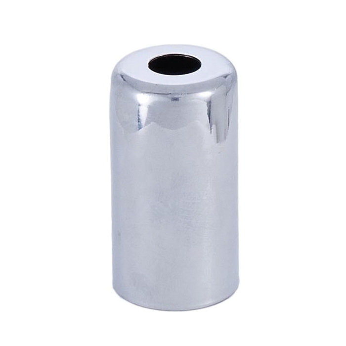 Metal socket cup, nickel finish, 1 7/8 Inch tall, 1 Inch diameter, 15/16 Inch inside diameter, fits E12 porcelain socket 48312 and other short candelabra sockets, center hole slips 1/8IP