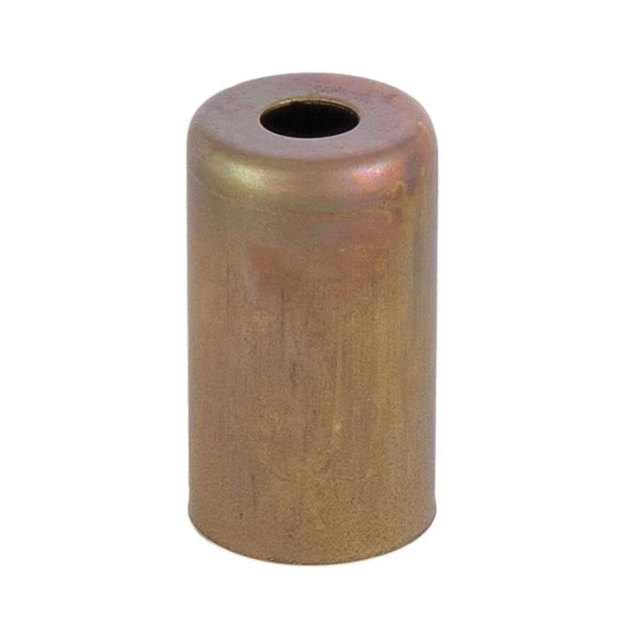 Metal socket cup, raw brass, 1 7/8 Inch tall, 1 Inch diameter, 15/16 Inch inside diameter, fits E12 porcelain socket 48312 and other short candelabra sockets, center hole slips 1/8IP