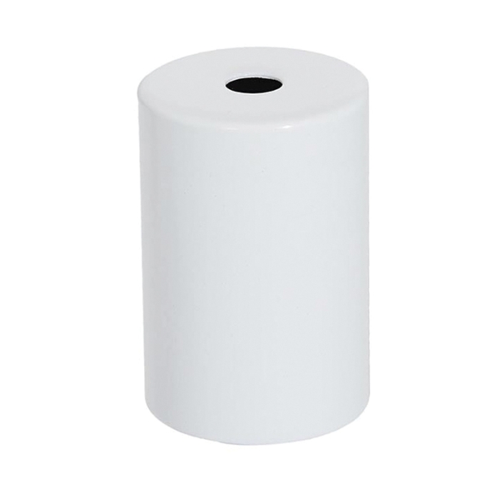 Glossy white finish steel lamp socket cup is made of a medium heavy gauge steel that will not easily bend or warp. Center hole slips 1/8IP and measures 2-1/2" tall, 1.72" O.D. (outside diameter) and 1.65" I.D. (inside diameter). This lamp socket cup is of a slightly larger size which fully covers and properly fits our E-26 lamp sockets: