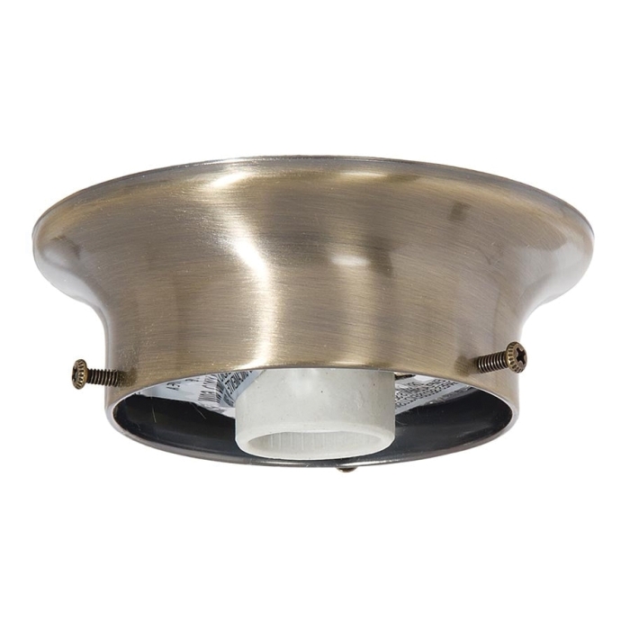 Wired, 3 1⁄4 inch fitter flush mount fixture holder. The fixture holder has has an antique brass finish, made of steel. Includes a mounting hardware kit. Accepts 3-1/4" lip fitter shades.