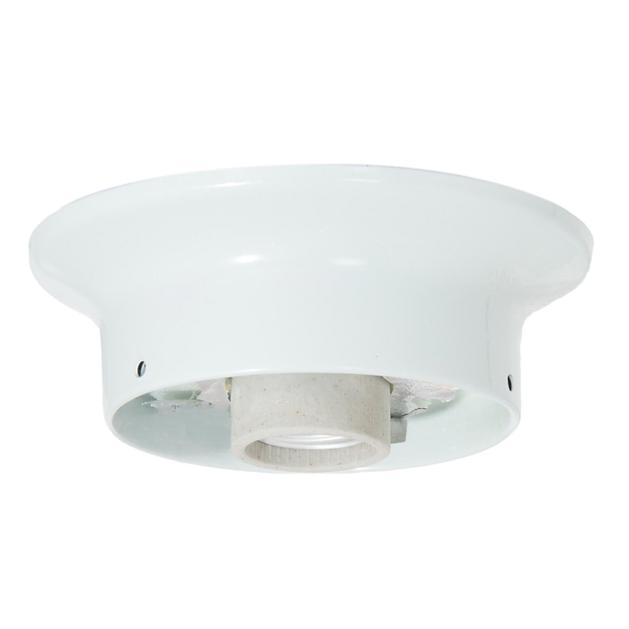 Wired, 3 1⁄4" fitter Fixture Holder, 5"dia., white gloss finish, U.L. listed.Comes with crossbar, wire nuts,matching or color-coordinated thumb screws,and includes high heat porcelain socket. Accepts 3-1/4" lip fitter shades.