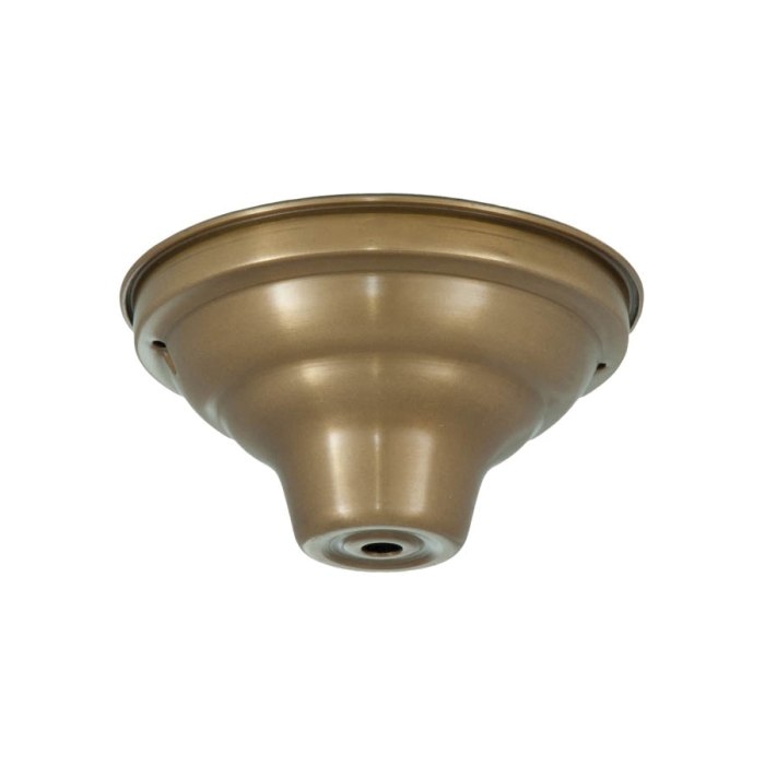 Antique Brass Fixture Canopy, can be used with loop for chain hanging fixture or used with shade holders. This canopy mounts flush to the ceiling. Measures 5 1/4 inch in diameter, 2 3/4 inch deep, and center hole slips 1/8 IP. 2 bar hole measure 4 1/2 inch apart.