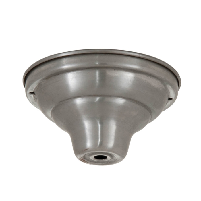 Steel Fixture Canopy, can be used with loop for chain hanging fixture or used with shade holders. This canopy mounts flush to the ceiling. Measures 5 1/4 inch in diameter, 2 3/4 inch deep, and center hole slips 1/8 IP. 2 bar hole measure 4 1/2 inch apart.