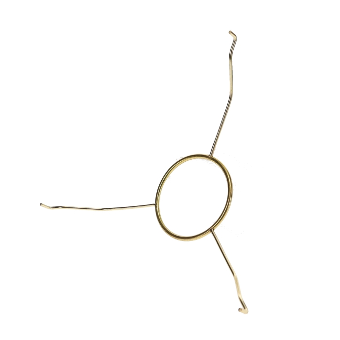 7 inch Tripod Shade Holder, Brass plated tripod shade holders are sized to fit snugly to lamp burners or galleries and safely support glass lamp shades. Center ring is solid brass. Fits No. 2 Queen Ann Burners.