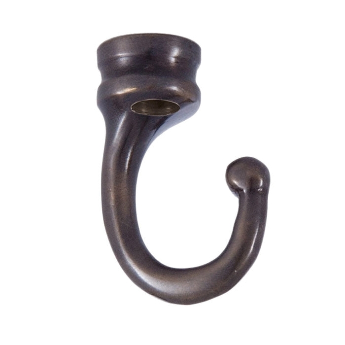 1 3/8" Cast Brass Hook with wire way. Antique Bronze, Tap 1/8F