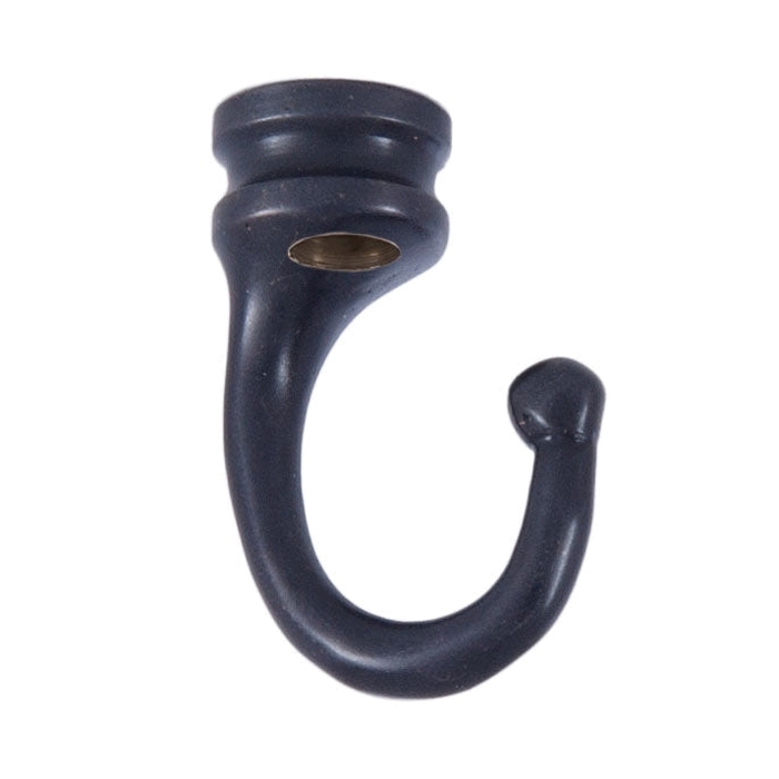 1 3/8" Cast Brass Hook with wire way. Black finish, Tap 1/8F