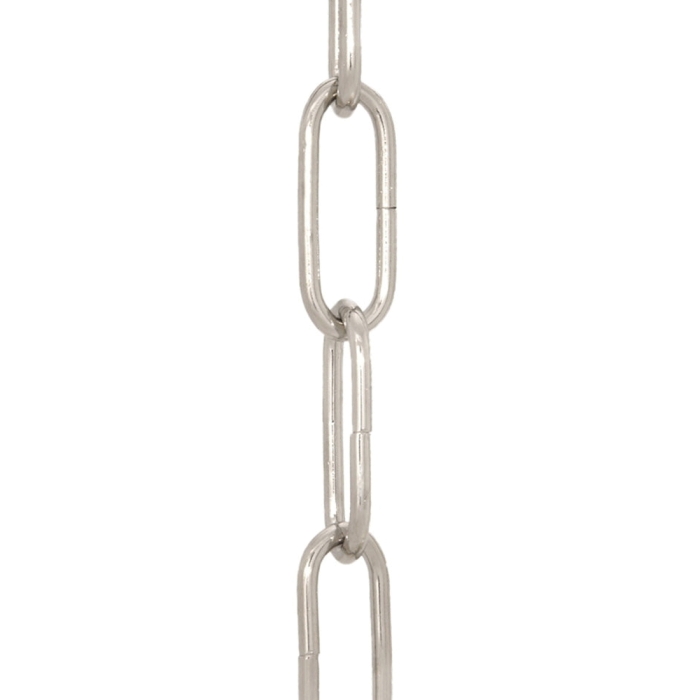 6 Gauge Nickel Plated, 6 gauge heavy duty straight-sided chain in 3 ft. lengths for medium-heavy service. Links are 2 1/4" X 7/8"