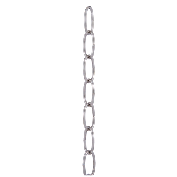 Steel Chain with satin nickel finish. 8 gauge - 3 foot lengths. Links are 1-9/16" by 7/8", 0.15" wire diameter