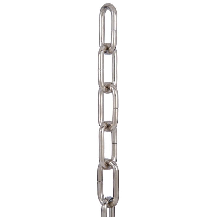 Nickel finish 0 Gauge Steel oval chain, Links are 2 5 /8" x 1 1 /4", .312" wire dia., side cut, 3 ft. lengths