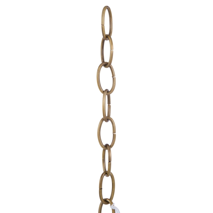 Antique Brass Finish Large Loop 8 Gauge Oval Chain. Sold per yardAntique Brass Finish 8 Gauge Solid Brass, Oval lighting chain. Links are 1 9/16 inch X 29/32 inch, wire diameter is .162" (side-cut). Sold per yard