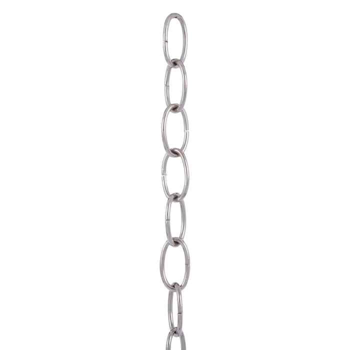 Nickel Plated Finish 8 Gauge Solid Brass, Oval chain. Links are 1 9/16 inch X 29/32 inch, wire diameter is .162" (side-cut). Sold per yard