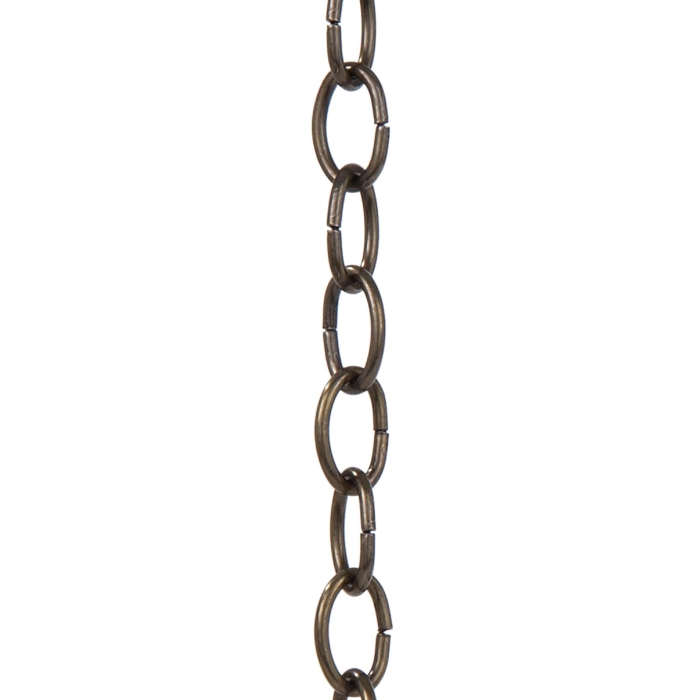 Baby oval steel decorative chain for lamp fixtures and light duty service, antique brass finish, 3/4" x 5/8" links, 1/8" wire thickness, side cut. Sold in 3 foot lengths