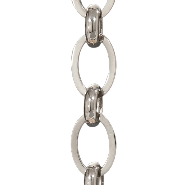 Hand Made Solid Brass Chain, Nickel Plated. Sold and priced per foot.Hand Made Solid Brass Chain, Oval Shaped, Nickel Oval links are 1 5/8" by 1 1/8". Round links are 1 1/16".