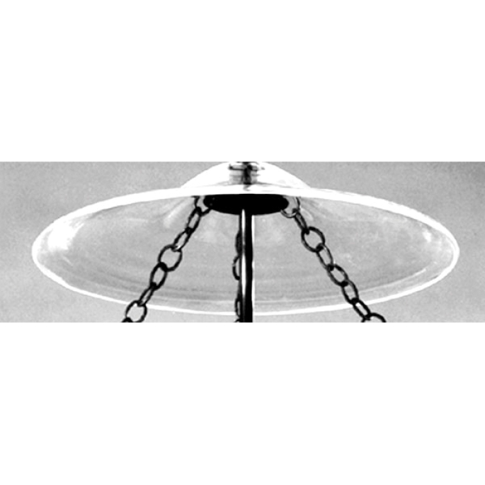 Replacement glass smoke bells for large lanterns antique hall lanterns. These smoke bells or "plates" are of hand blown clear glass that is thin and fairly consistent in form. All of these slip 1/8 IP pipe (3/8" center hole).
