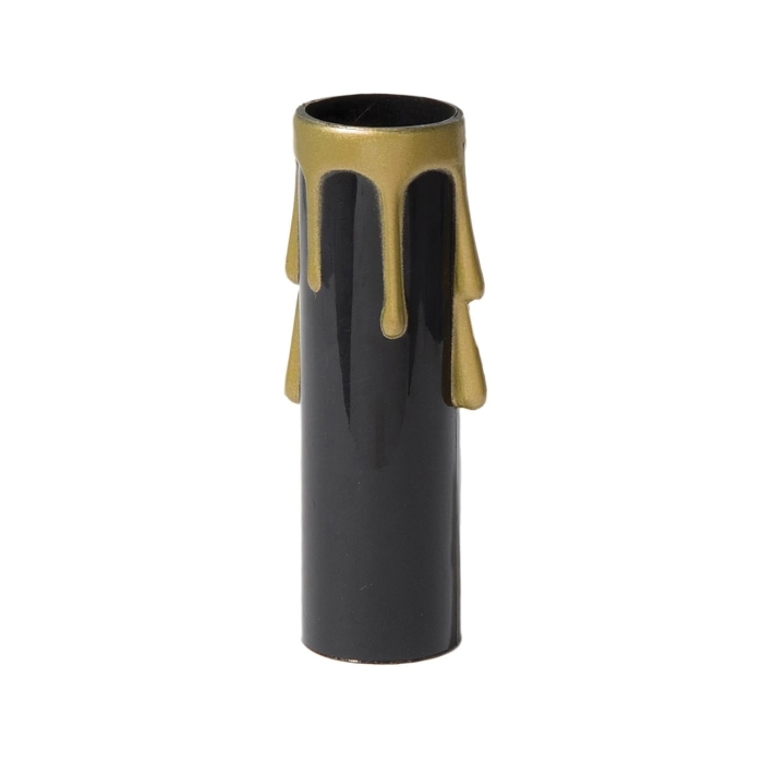 3 Inch tall black colored plastic candelabra base E12 size candle cover with gold drip details.