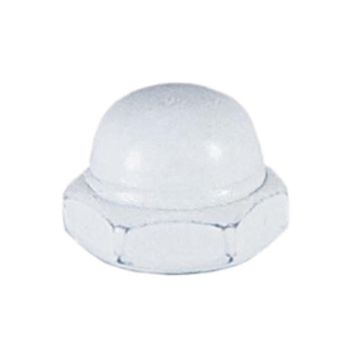 8/32F cap nut, white finish, 9/32 inch ht., 5/16 inch dia. across flats