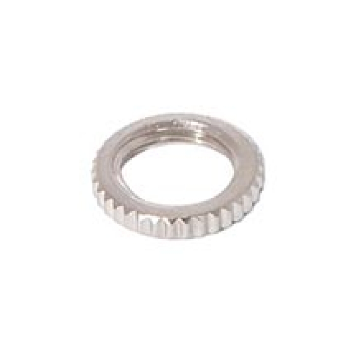 9⁄16" Outside diameter, knurled brass locknut, 3⁄32" thick, 1/8 F, satin nickel finish.
