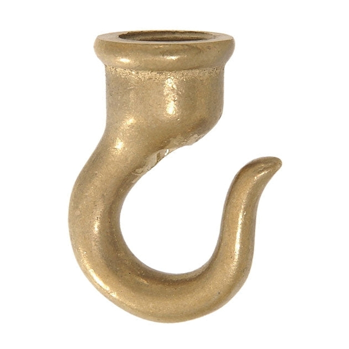 2" Heavy Cast Brass Hook, Tap 3/8F 2" Heavy Cast Brass Hook with wire way. Unfinished, 2" ht. X 1 3/8" wide, Tap 3/8F