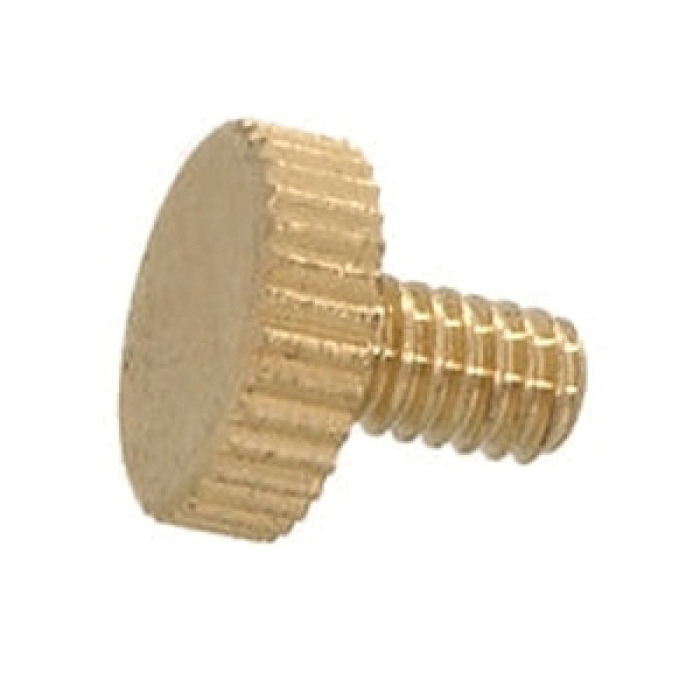 8-32 Knurled-Head Thumb Screw, 1/4" Length (Min. order 3 pcs.) 8-32 Thread, Knurled-Head Thumb Screw, 1/4" thread length. Burnished & Lacquered Brass